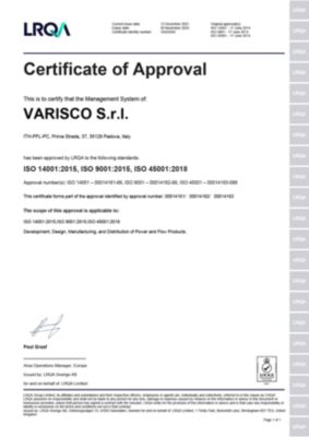 Le succès de Varisco est le résultat de décisions stratégiques prises chaque jour. Disposer de systèmes de gestion de la qualité capables de réduire la complexité de l’entreprise et de certifier la qualité du traitement, le respect de l’environnement et la sécurité et la santé des travailleurs est une priorité absolue.