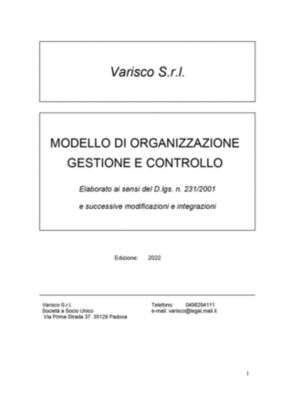Varisco Srl si è dotata di un Modello di Organizzazione, Gestione e Controllo come previsto dal Decreto Legislativo 231/2001.